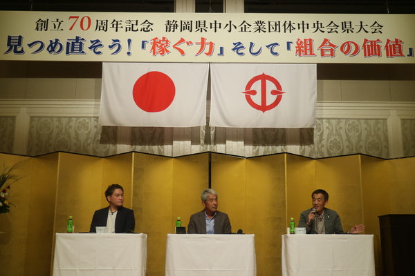 今年のテーマは【見つめ直そう!「稼ぐ力」そして「組合の価値」】。大会では、稼ぐ力向上に取り組む組合への顕彰式や、県内3組合(静岡クラフトビール協同組合・静岡市石材事業協同組合・静岡県オートバイ事業協同組合)によるパネルディスカッションが行われ、“稼ぐ力向上”に挑戦する組合事例発表が行われました。